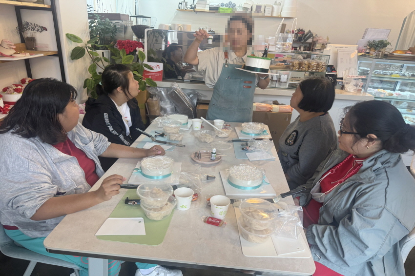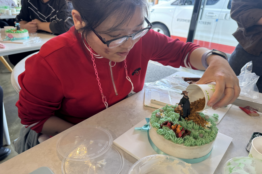 [주간보호센터] - 요리활동(떡케이크 만들기) 울진군장애인종합복지관주간보호… 0 219 10.17 17:23 오늘은 울진 관내에 위치한 꽃담길에서 특별한 떡케이크 만들기 체험을 진행하였습니다! 준비된 떡케이크 시트 위에 앙금과 식용색소를 섞어 잔디를 표현하고, 당근·딸기·꽃·돌 등 다양한 초콜릿으로 예쁘게 데코하며 개성 있는 케이크를 완성하였습니다. 이용 모두 즐겁고 달콤한 시간을 보냈습니다