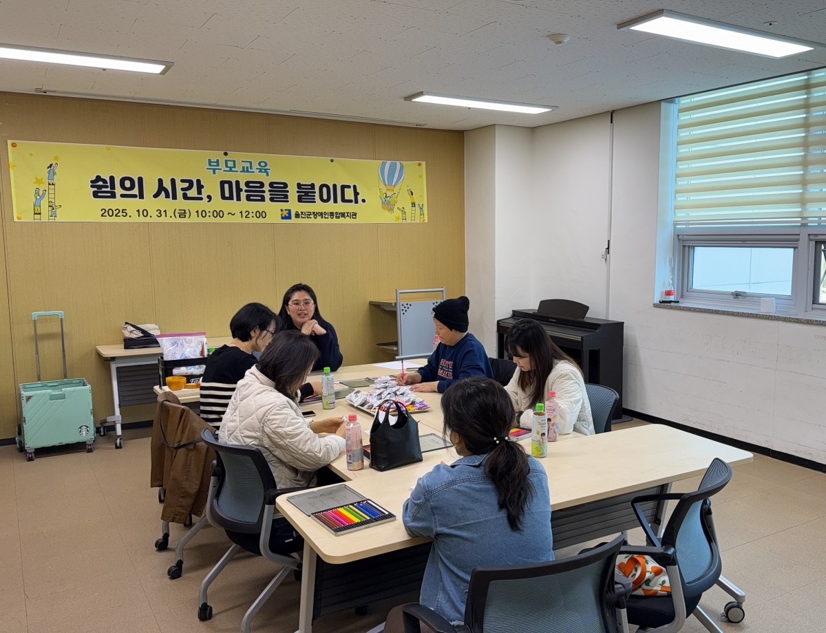 2025년 부모교육 상담사례지원팀 0 240 2025.11.06 10:23 10월 31일 (금요일) 장애자녀를 양육하는 부모를 대상으로 부모교육을 진행하였습니다. "쉼의 시간, 마음을 붙이다."라는 주제로 다양한 재료를 활용한 콜라주 활동을 진행하였습니다. 각자가 만든 작품을 소개하며 느낀 감정을 나누고, 자기 돌봄을 위해 필요한 요소를 상징적으로 작품에 담는 활동을 통해 부모로서의 공통된 감정을 공유하고 공감할 수 있었던 시간으로 만족도가 높은 교육이었습니다^^