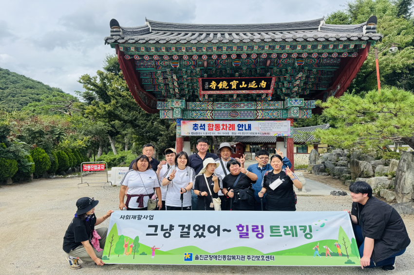주간보호센터] - 현장체험학습 ('내연산' 계곡트레킹) 울진군장애인종합복지관주간보호… 0 142 09.22 09:56 현장체험학습으로 '내연산' 계곡트레킹을 다녀왔습니다! 성보박물관과 보경사를 둘러보ㄱㅎ 아름다운 자연 풍경을 감상하며 즐거운 시간을 보냈습니다! 땀을 흘리며 함께 걷고, 웃고 떠들다 보니 어느새 또 하나의 소중한 추억이 생겼네요