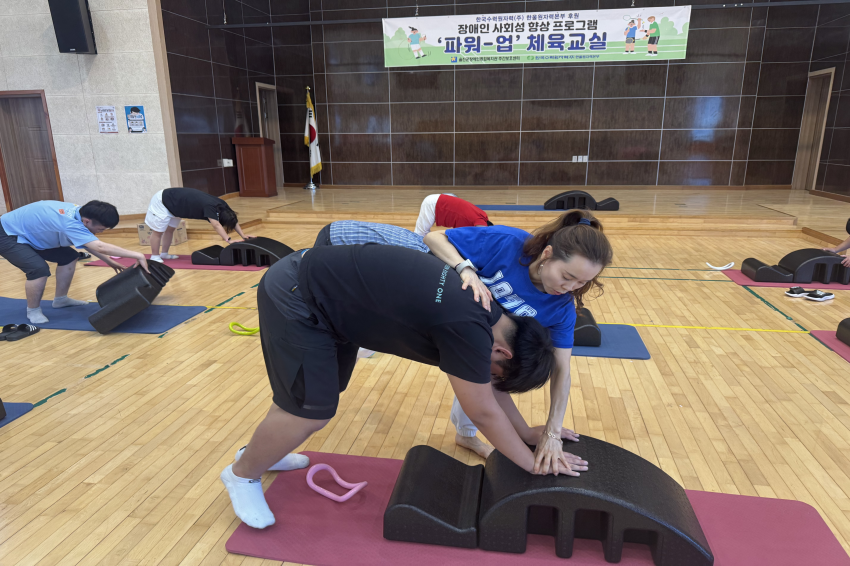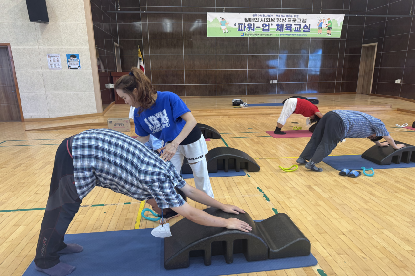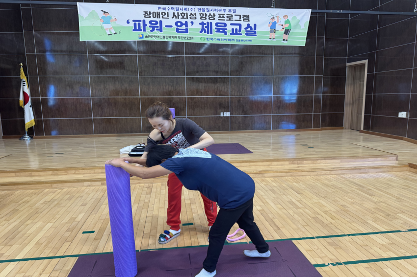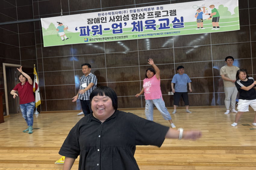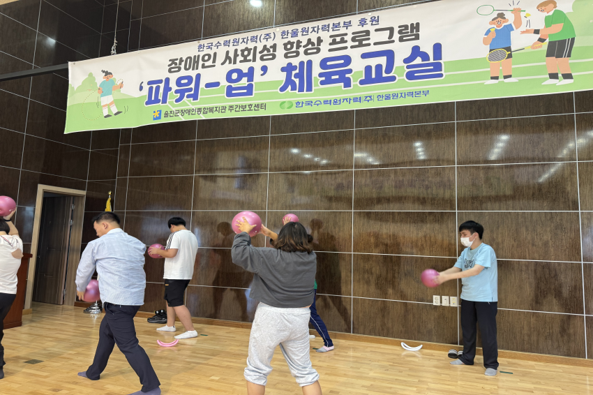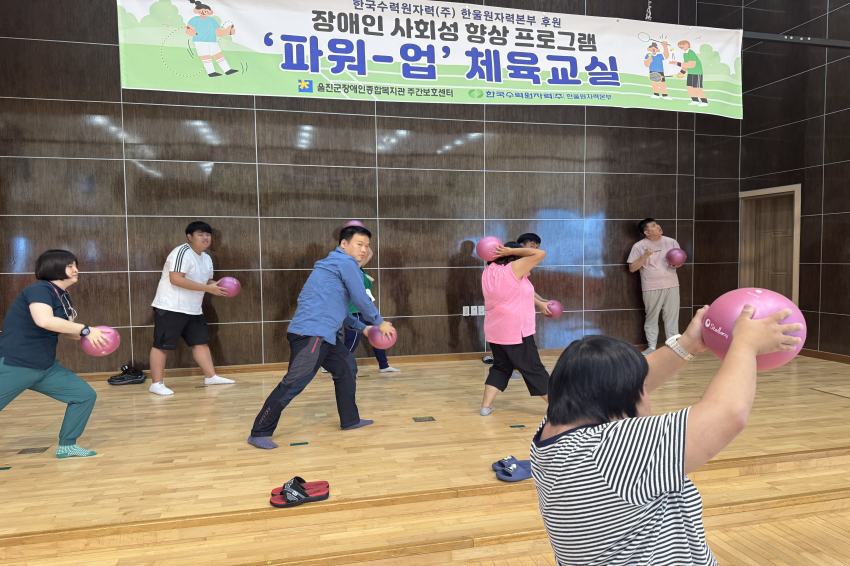 [주간보호센터]- 09월 '파워-업'체육교실 울진군장애인종합복지관주간보호… 0 16 10.13 09:18 한국수력원자력(주) 한울원자력본부의 후원을 받아 2025년 장애인 사회성 향상 프로그램 지원사업으로 '체육교실 전현주 강사'와 09월 '파워-업' 체육교실을 진행하였습니다. 스파인코렉트, 미니볼, 폼롤러 등 여러 기구를 이용하여 몸의 균형을 맞추고 코어의 힘을 기르는 활동을 배우며 즐겁게 참여하고 계십니다.