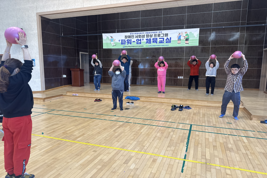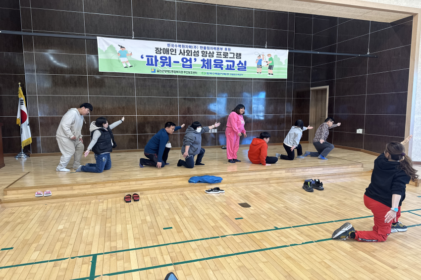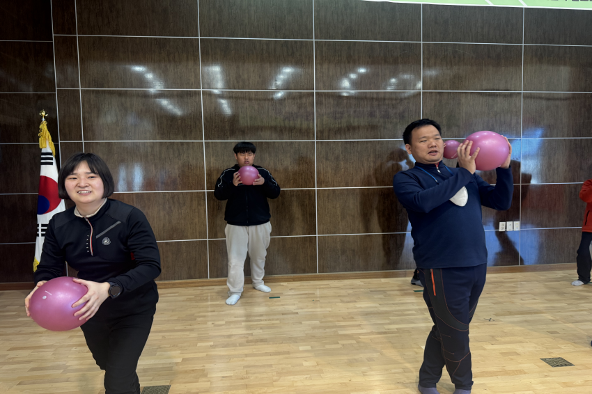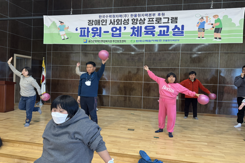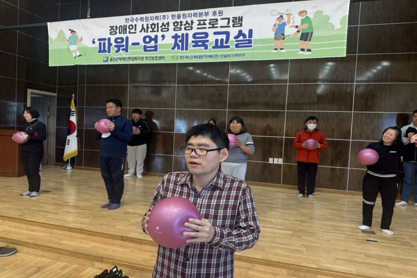 [주간보호센터]- 11월 '파워-업'체육교실 울진군장애인종합복지관주간보호… 0 48 11.28 09:07 한국수력원자력(주) 한울원자력본부의 후원을 받아 2025년 장애인 사회성 향상 프로그램 지원사업으로 '체육교실 전현주 강사'와 11월 '파워-업' 체육교실을 진행하였습니다. 미니볼, 폼롤러 등 여러 기구를 이용하여 몸의 균형을 맞추고 코어의 힘을 기르는 활동을 배우며 즐겁게 참여하고 계십니다.