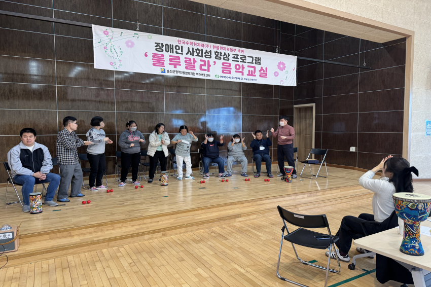 [주간보호센터]- 12월 '룰루랄라'음악교실 울진군장애인종합복지관주간보호… 0 12 12.18 10:17 한국수력원자력(주) 한울원자력본부의 후원을 받아 2025년 장애인 사회성 향상 프로그램 지원사업으로 '음악교실 서자연 강사'와 12월 '룰루랄라' 음악교실을 진행하였습니다. 공명실리폰, 점베, 오카리나, 마라카스 등을 포함하여 1:1 레슨도 받고 다른 이용자들과 모여 여러 악기로 합주하며 즐겁게 참여하고 계십니다.