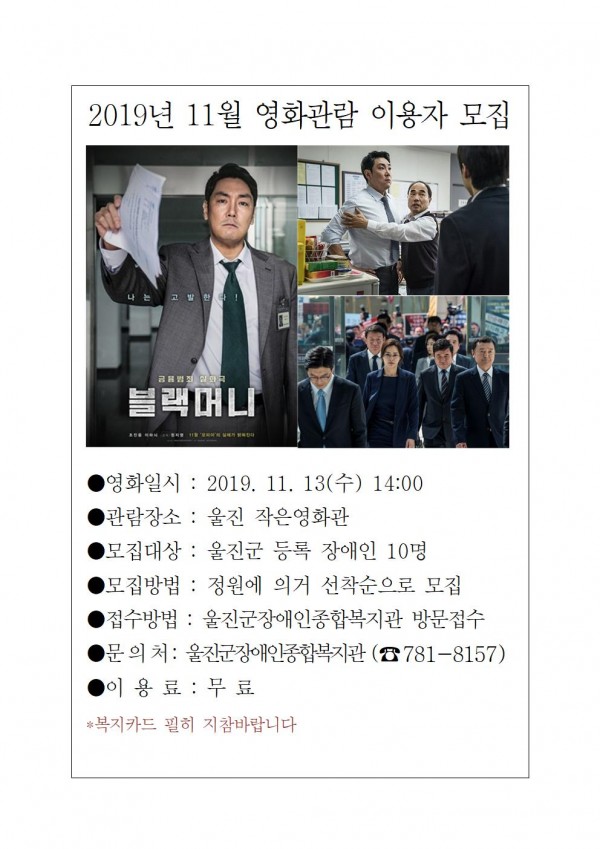 울진군장애인종합복지관 직원 채용 공고(긴급/주간활동서비스사업 제공인력)