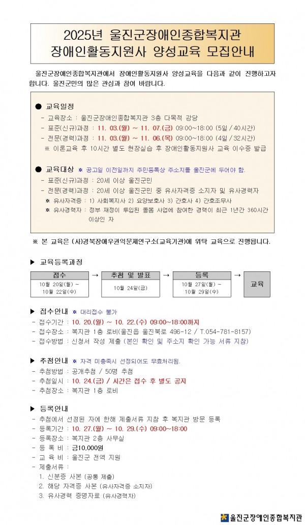 2025년 울진군장애인종합복지관 하계방학 사회복지현장실습 실습생 모집