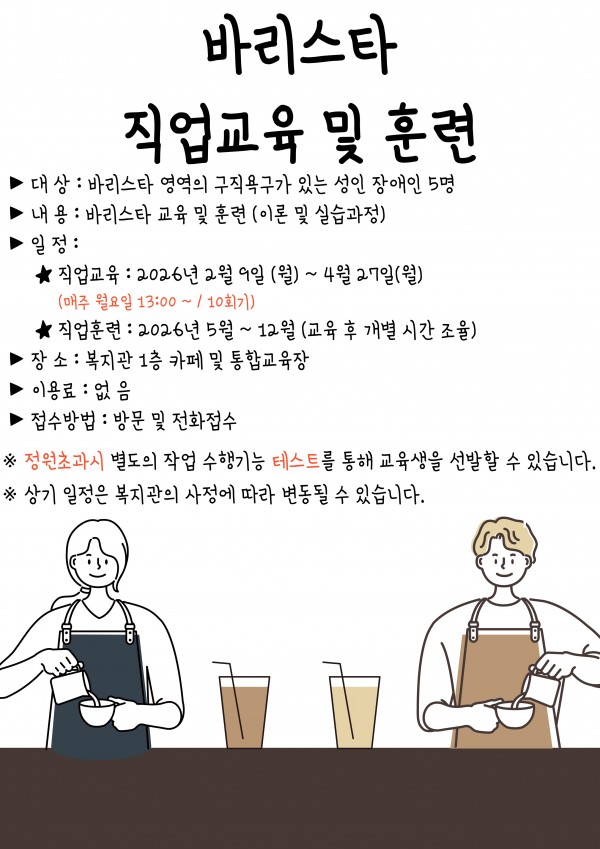 2026년 직업교육 및 훈련(바리스타)프로그램 안내