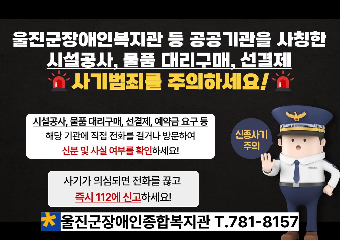 울진군장애인종합복지관 등 공공기관 사칭 사기 관련 주의 안내