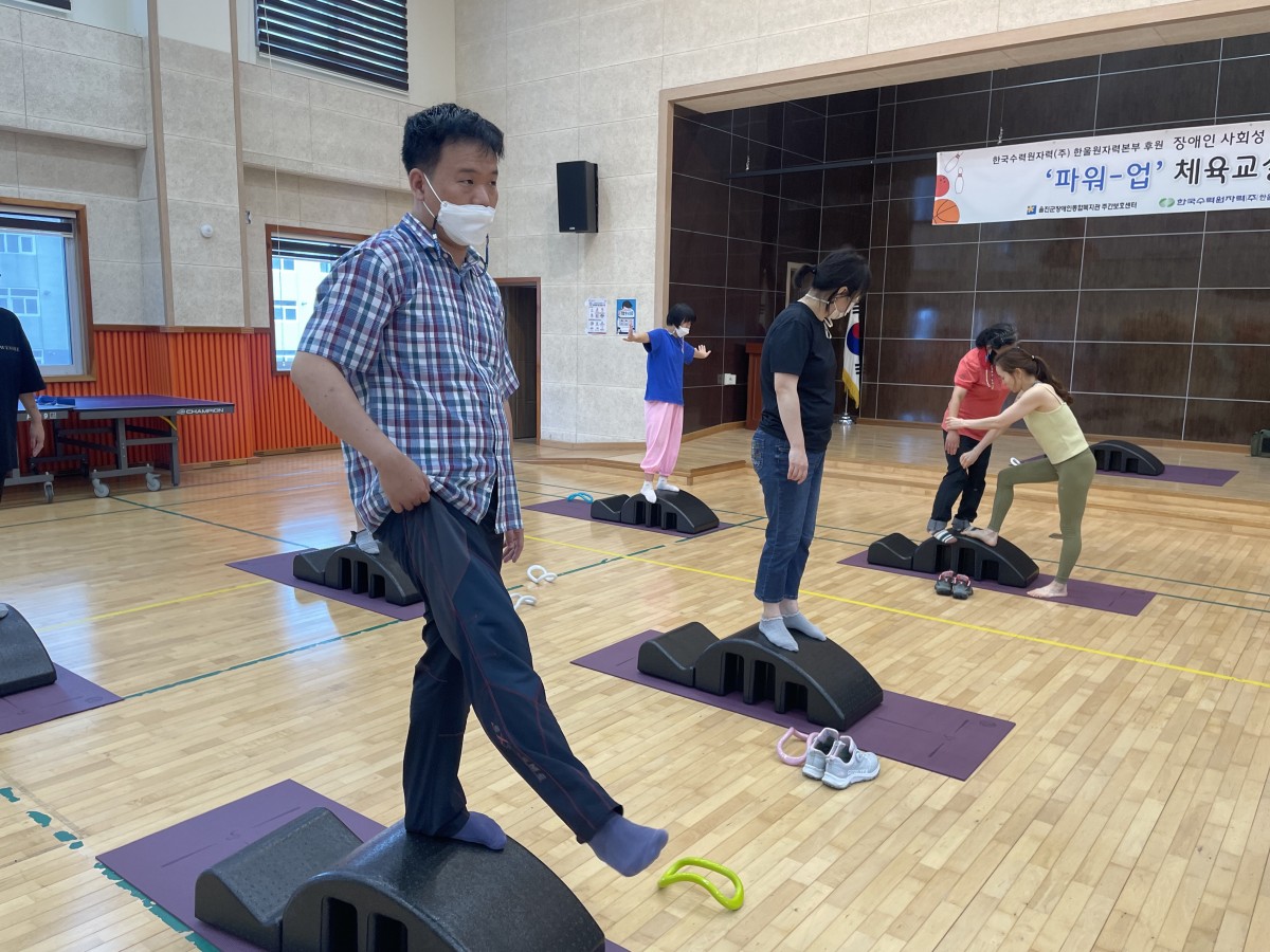 [주간보호센터 - 08월'파워-업'체육교실] 울진군장애인종합복지관주간보호… 0 1375 2023.09.04 16:19 한국수력원자력(주) 한울원자력본부의 후원을 받아 장애인 사회성 향상 프로그램 지원사업으로 '체육교실 전현주 강사'와 08월 '파워-업' 체육교실을 진행하였습니다. 요가, 짐볼, 폼룰러등 여러 기구를 이용하여 균형잡힌 몸을 만들 수 있도록 즐겁게 참여하고 계십니다.