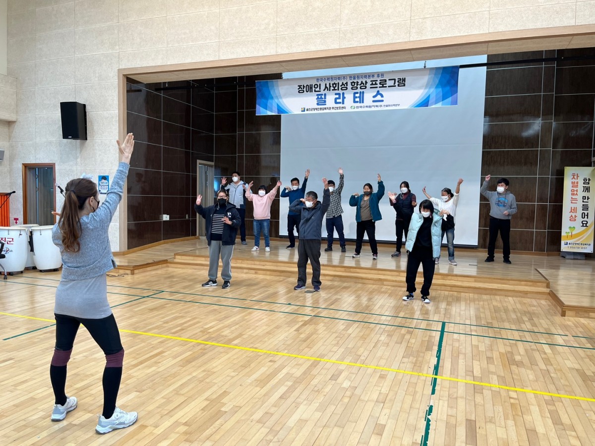 [주간보호센터] - 11월 필라테스 울진군장애인종합복지관주간보호… 0 1810 2022.11.08 16:45 한국수력원자력(주) 한울원자력본부 후원으로 2022년 장애인 사회성 향상 프로그램 지원사업으로 '전현주 강사'와 11월 필라테스 교육을 진행하였습니다. 작지만 값진 발표회를 하루 앞두고 더욱 열심히 참여하였답니다. 이용자분들의 노력으로 완성된 공연이 너무 궁금하네요 *^^* 본 교육은 04월부터 총 50회 진행하였습니다.