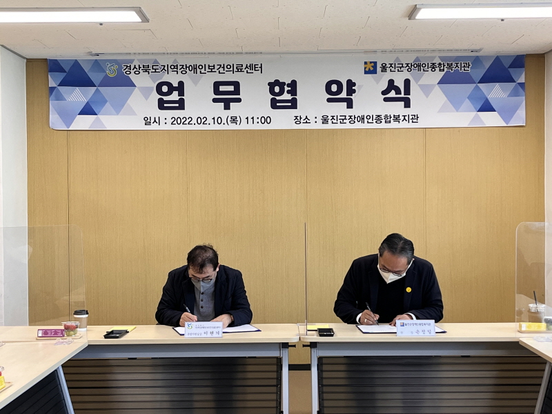 업무협약식(경상북도지역장애인보건의료센터) 윤유진 0 2036 2022.02.10 15:33 2월 10일(목) 경상북도지역장애인보건의료센터와 업무협약식이 있었습니다. 경상북도지역장애인보건의료센터와 상호지원 및 협력을 통하여 울진 지역의 장애인들의 삶의 질을 향상시키고, 건강권을 증진하기 위하여 노력하겠습니다.