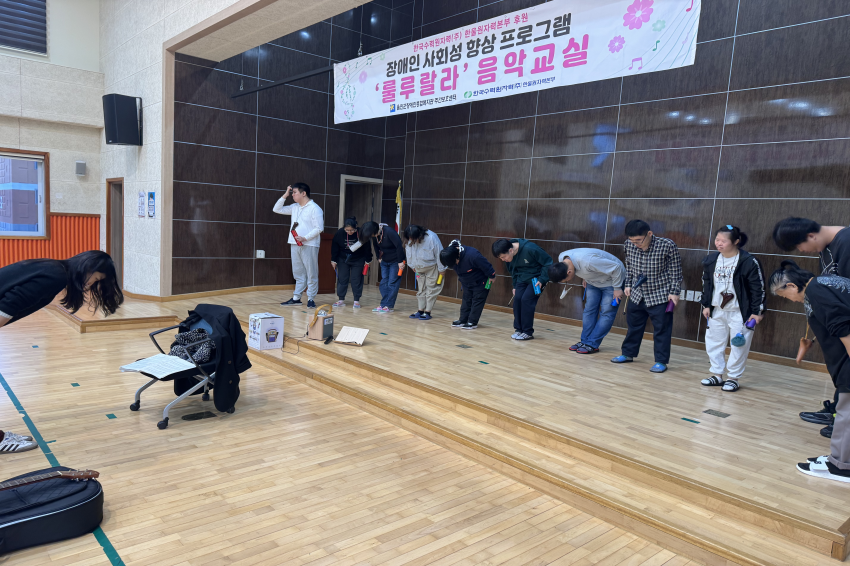 [주간보호센터]- 10월 '룰루랄라'음악교실 울진군장애인종합복지관주간보호… 0 88 10.29 11:59 한국수력원자력(주) 한울원자력본부의 후원을 받아 2025년 장애인 사회성 향상 프로그램 지원사업으로 '음악교실 서자연 강사'와 10월 '룰루랄라' 음악교실을 진행하였습니다. 젬베, 마라카스, 공명실리폰, 오카리 등을 포함하여 1:1 레슨도 받고 다른 이용자들과 모여 여러 악기로 합주하며 즐겁게 참여하고 계십니다.
