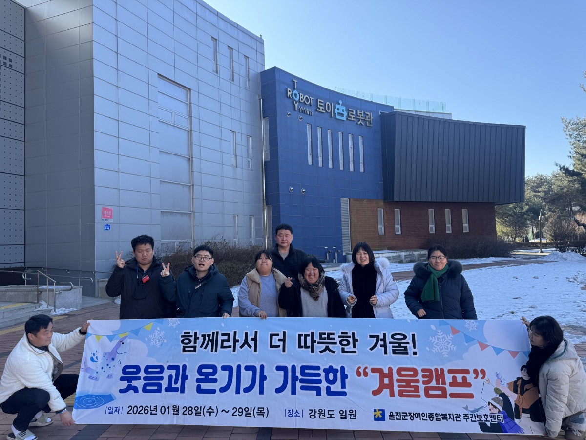 [주간보호센터] - 캠프 (화천 '산천어 축제') 울진군장애인종합복지관주간보호… 0 81 02.06 13:25 센터는 1월 28일~29일, 화천 산천어축제를 다녀왔습니다~! ❄️ 화천 하면 빠질 수 없는 산천어 낚시와 얼음썰매 체험 등 겨울축제를 즐기고, 춘천 토이로봇관을 관람·체험하며 웃음과 추억이 가득한 알찬 시간을 보냈습니다